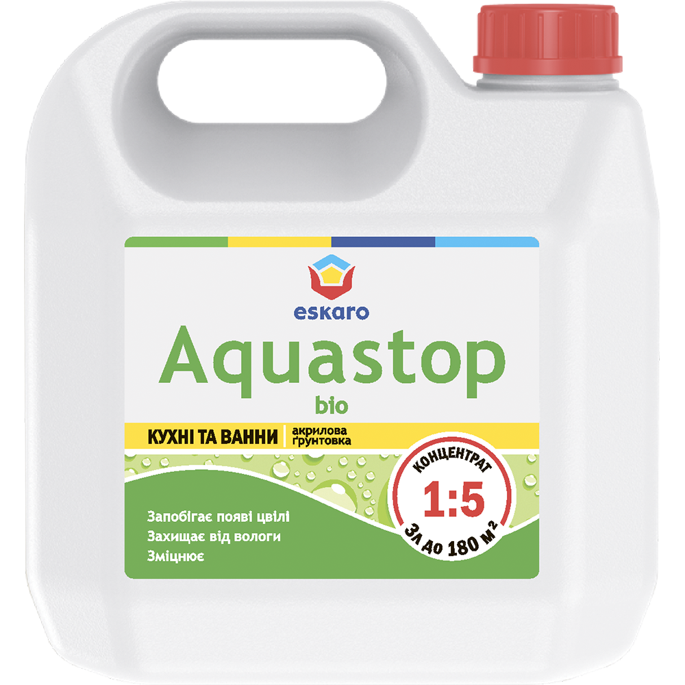Eskaro Aquastop Bio — это профессиональная акриловая грунтовка-концентрат, разработанная специально для помещений с повышенной влажностью. Она глубоко проникает в основание, укрепляет его и создает надежную защиту от появления плесени и грибка.
