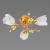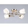 Каркас виготовлений з високоякісного металу чорного та позолоченого кольору, надаючи йому стильний та елегантний вигляд. Шість плафонів зі скла розсіюють світло рівномірно, створюючи приємну атмосферу в приміщенні.