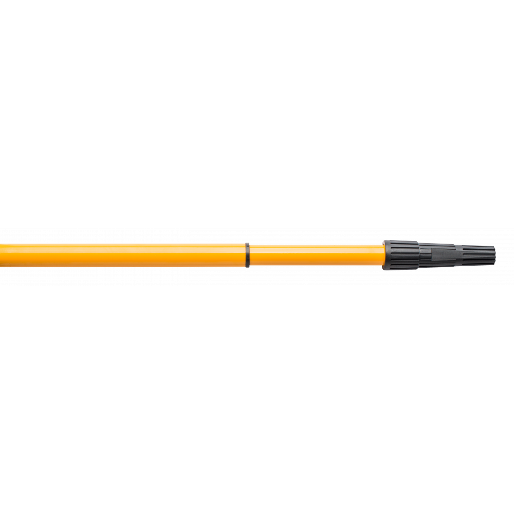 Телескопическая конструкция позволяет регулировать длину стержня в пределах рабочего диапазона, обеспечивая оптимальный радиус действия для работы с потолками, стенами и фасадами. Корпус изготовлен из прочного материала, устойчивого к изгибу и механическим нагрузкам. Ручка имеет противоскользящую фактуру и обеспечивает надежный хват во время работы.