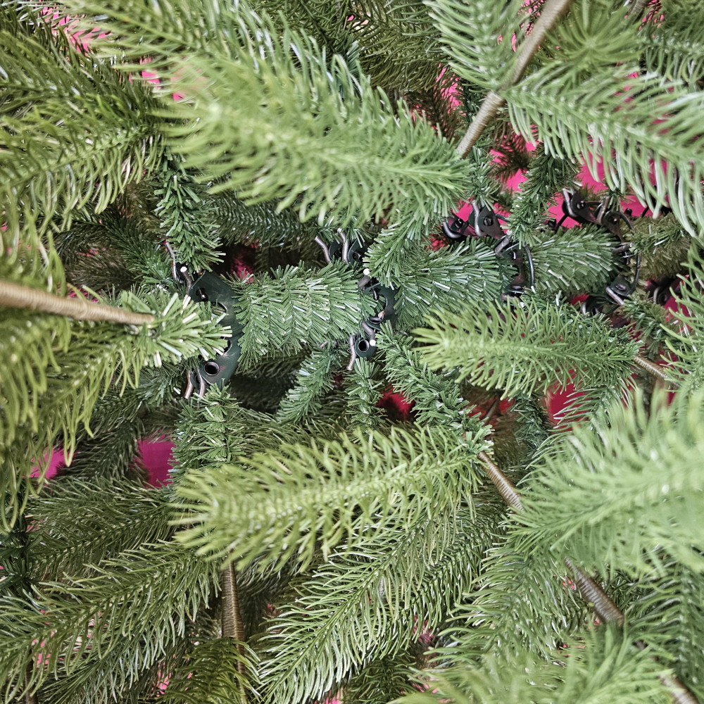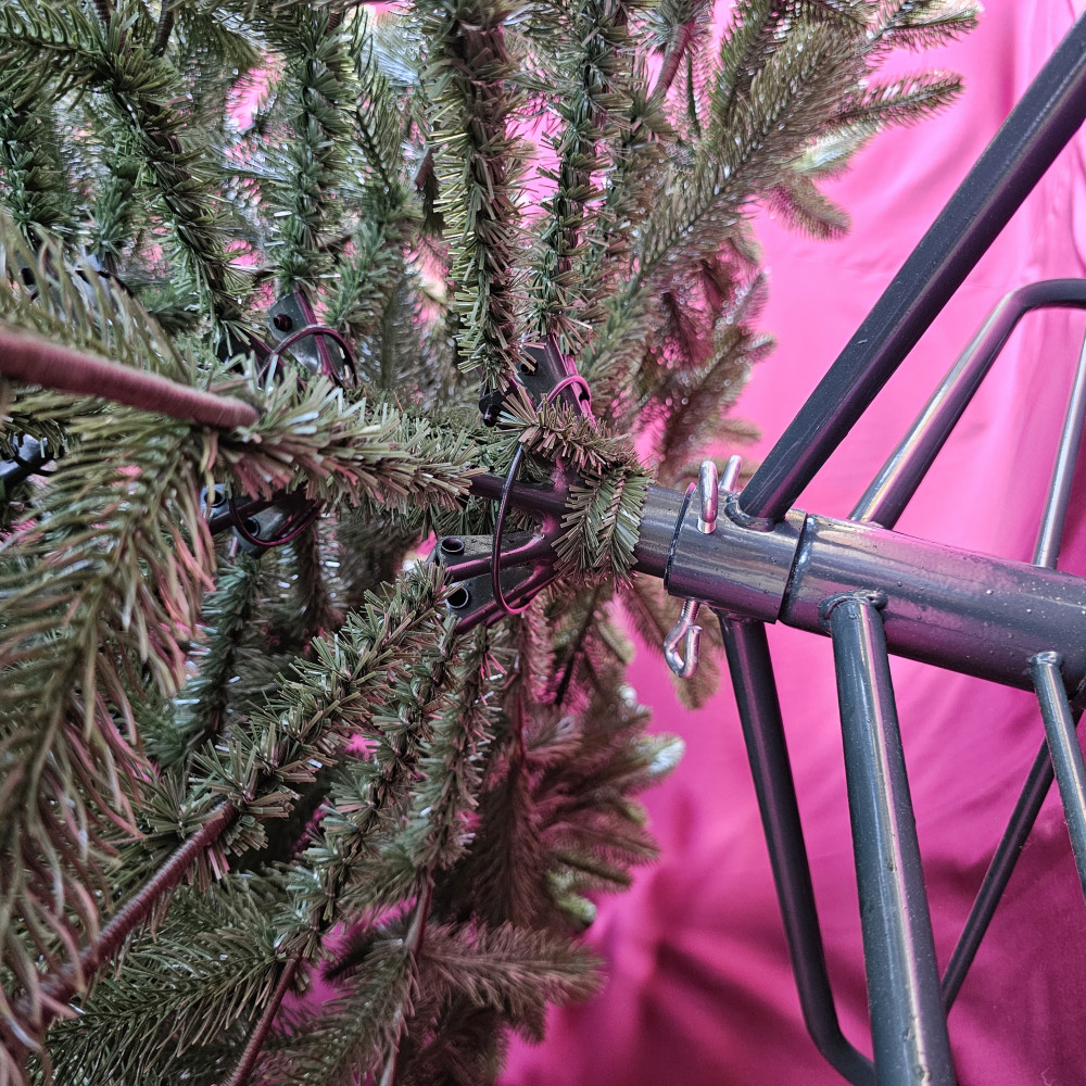 Конструкція працює за принципом парасолі: гілки самі відкидаються на потрібний рівень, і залишається лише розпушити відростки. Це особливо важливо для великих і густих моделей, адже економить час і сили під час встановлення.