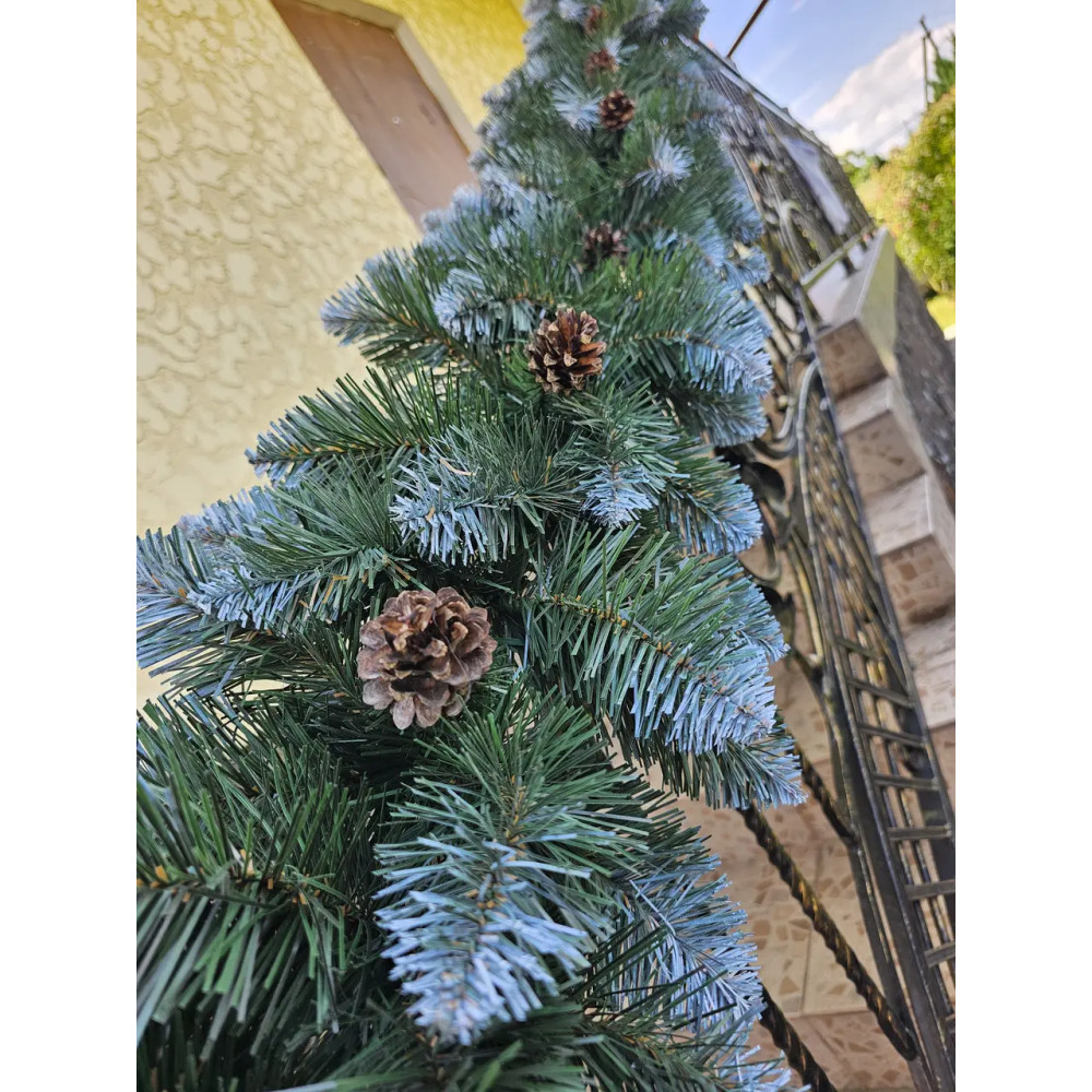 Сочетание заснеженных кончиков и насыщенно-зеленой хвои у основания создает натуральный вид. Гирлянда украшена 10 шишками, поэтому выглядит празднично даже без дополнительных украшений.