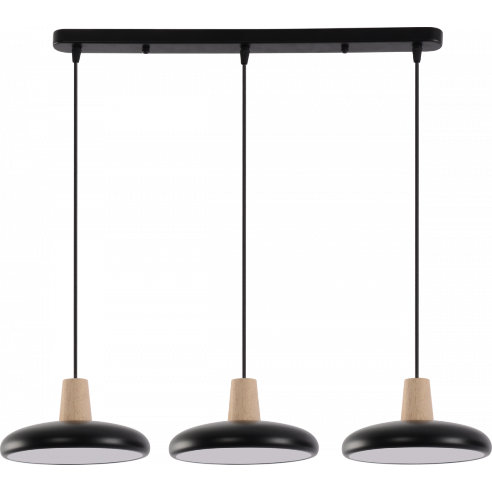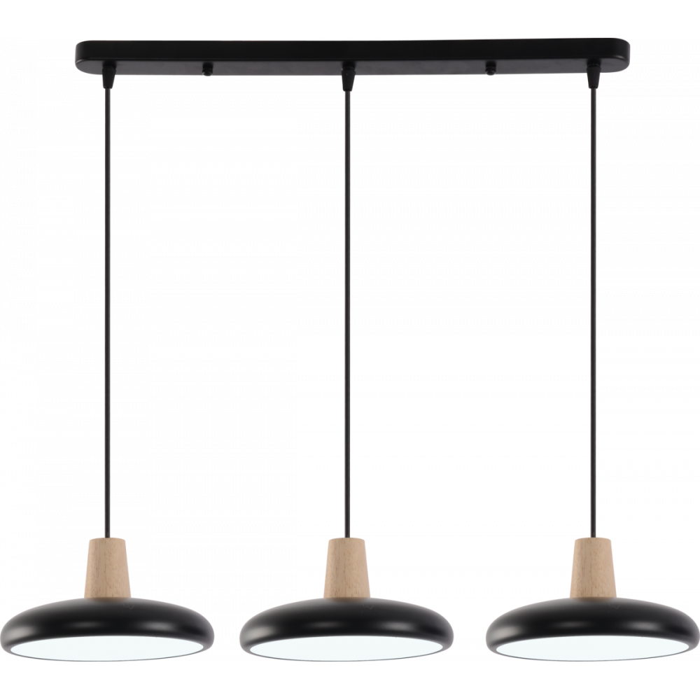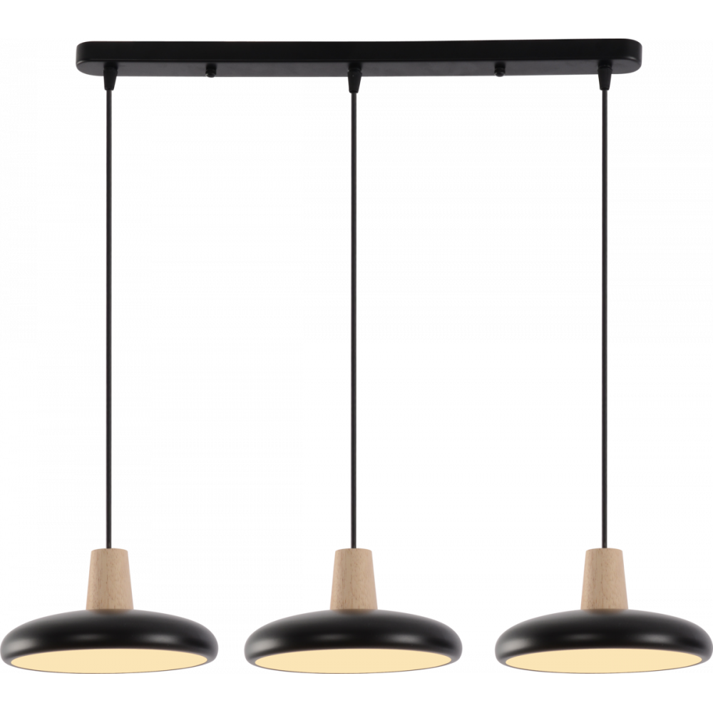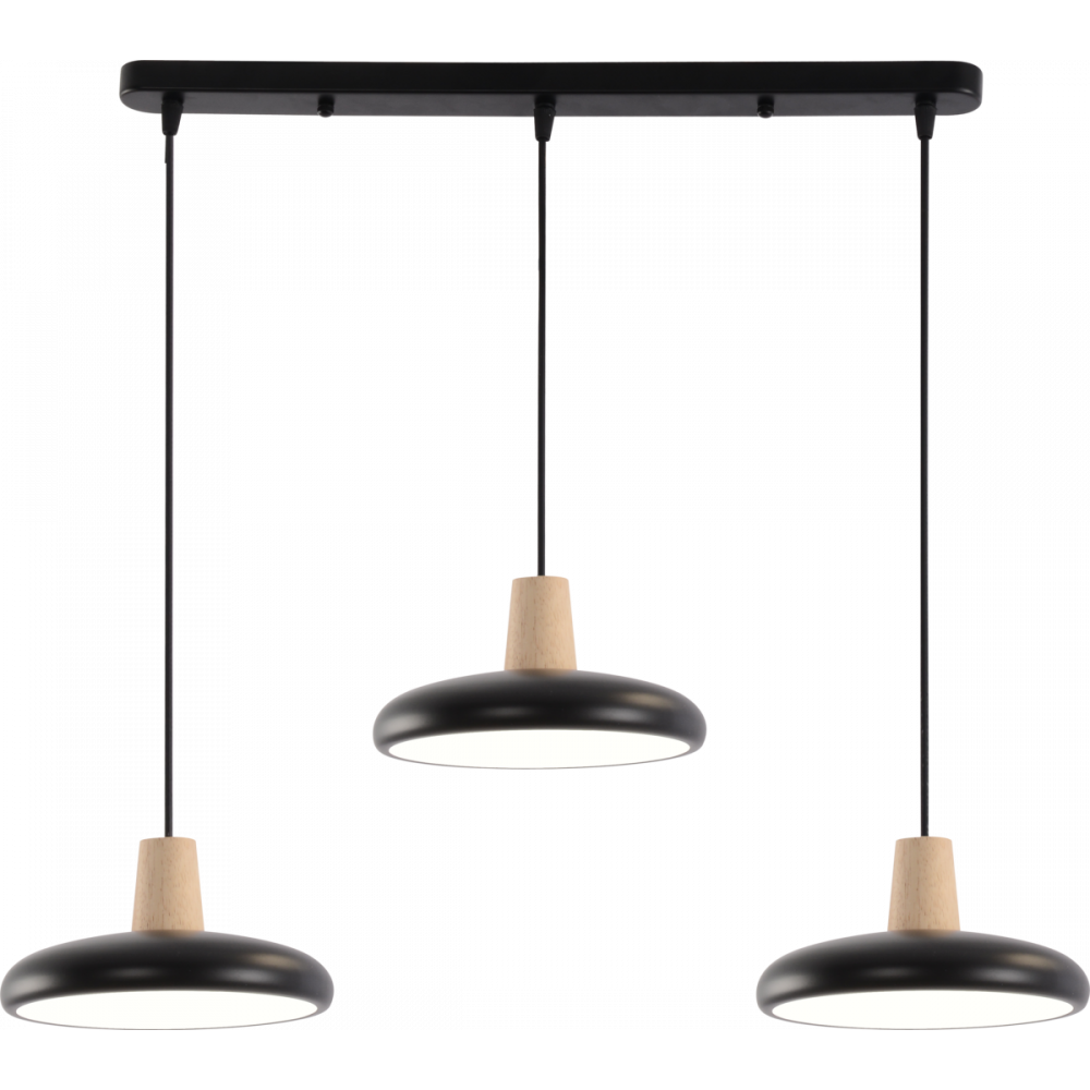 Підвісна люстра XI3342-3 — це ідеальне поєднання сучасного дизайну та функціональності, що гармонійно поєднує глибокий чорний колір із натуральними дерев'яними елементами. Ця модель додасть вашому інтер'єру стилю та затишку. Особливістю люстри є можливість регулювання висоти кожного підвісу, що дозволяє створити унікальну композицію освітлення.