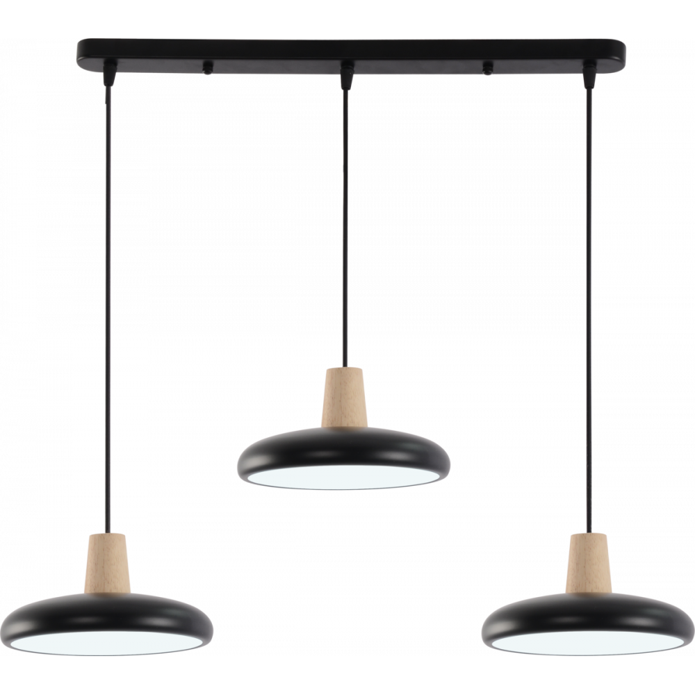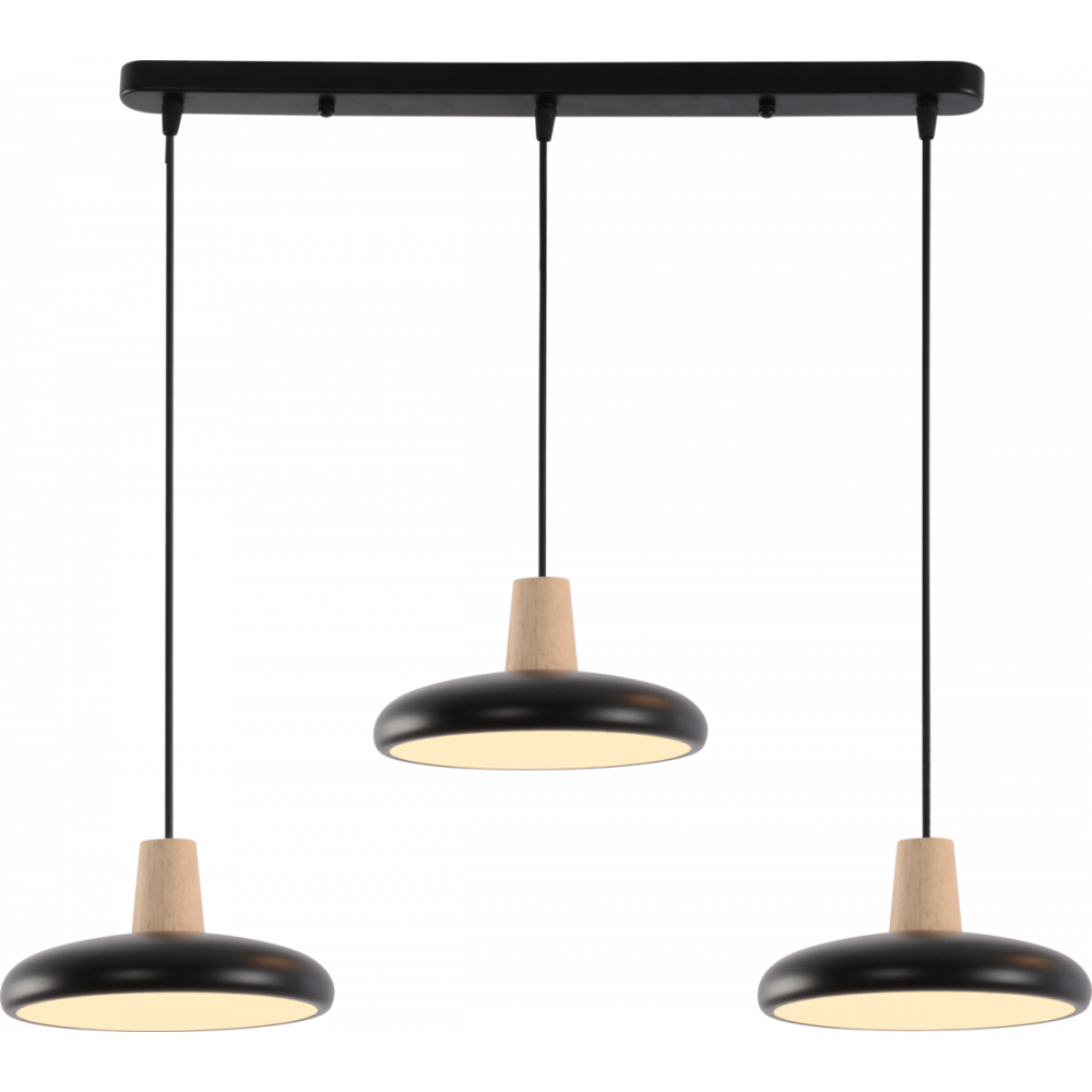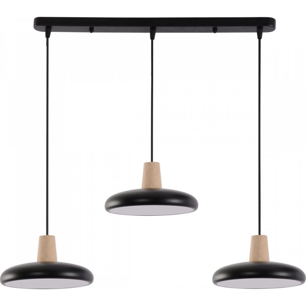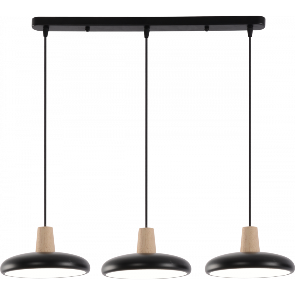 Підвісна люстра XI3342-3 — це ідеальне поєднання сучасного дизайну та функціональності, що гармонійно поєднує глибокий чорний колір із натуральними дерев'яними елементами. Ця модель додасть вашому інтер'єру стилю та затишку. Особливістю люстри є можливість регулювання висоти кожного підвісу, що дозволяє створити унікальну композицію освітлення.
