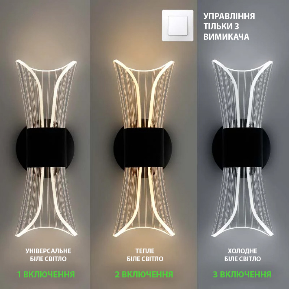 Включите светильник и выберите режим освещения с помощью стандартного настенного выключателя. Каждый режим сменяется при очередном нажатии.
