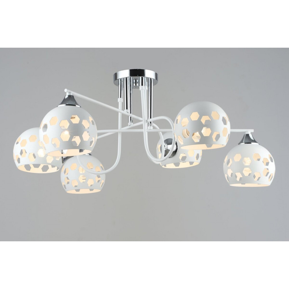 Каркас виготовлений з високоякісного металу білого та хромового кольору, що додає люстрі сучасного та стильного вигляду. Шість металевих плафонів білого кольору створюють м'яке і рівномірне світло, яке зробить ваш інтер'єр ще більш затишним.