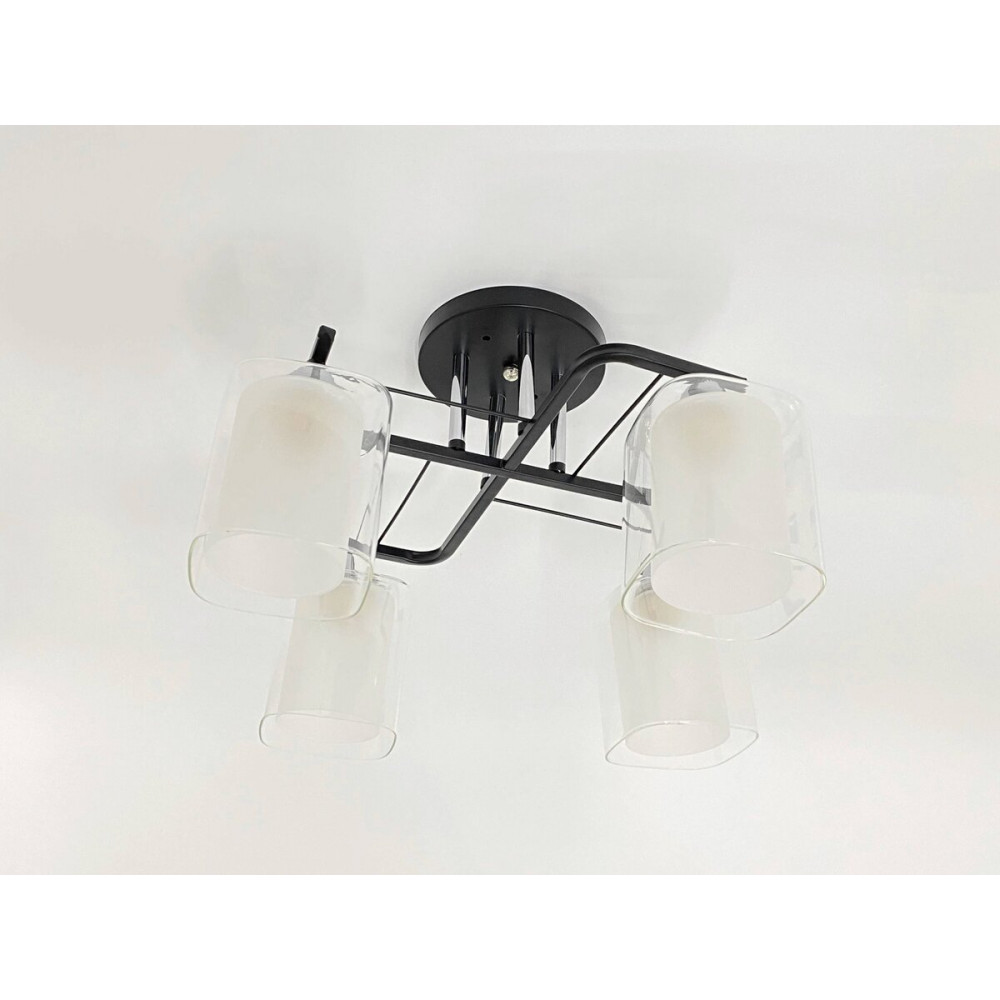 Люстра стельова класична на 4 плафони метал та скло VALESO 2433B/4 Чорний+Хром