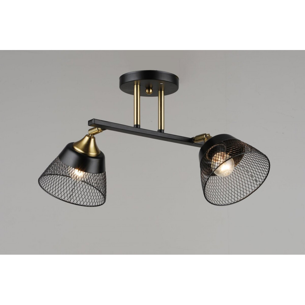 Люстра стельова на 2 плафони VALESO N6823/2, патрон E27, Лофт, Чорний+Мідь