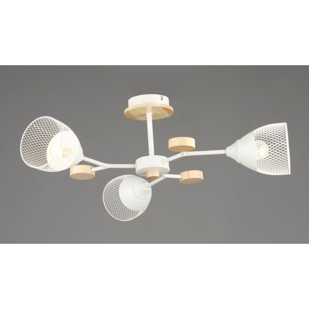 Люстра стельова на 3 плафони VALESO N6779/3 E27 Білий + Дерево N6779/3