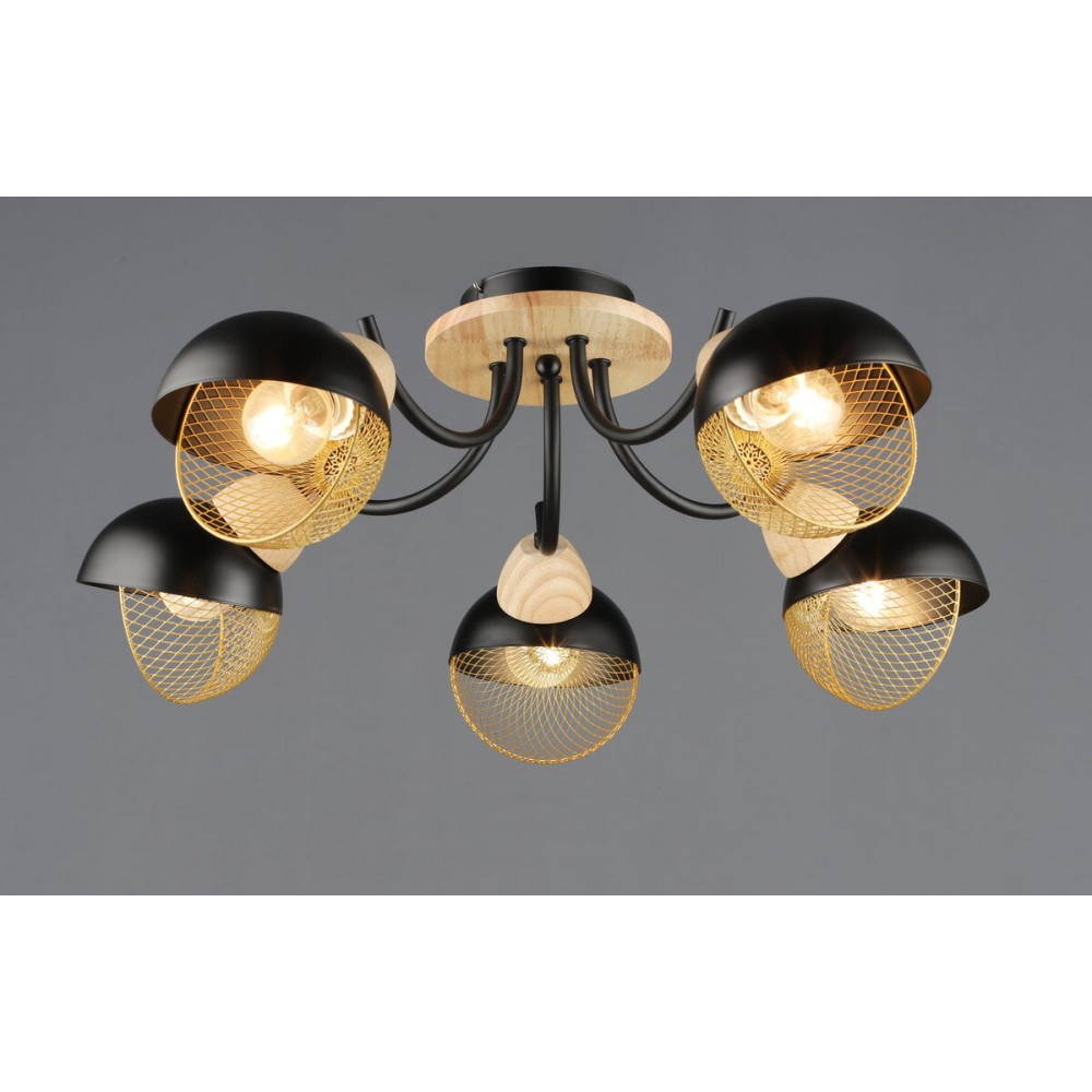 Люстра стельова на 5 плафонів N6656/5 Чорний+Дерево