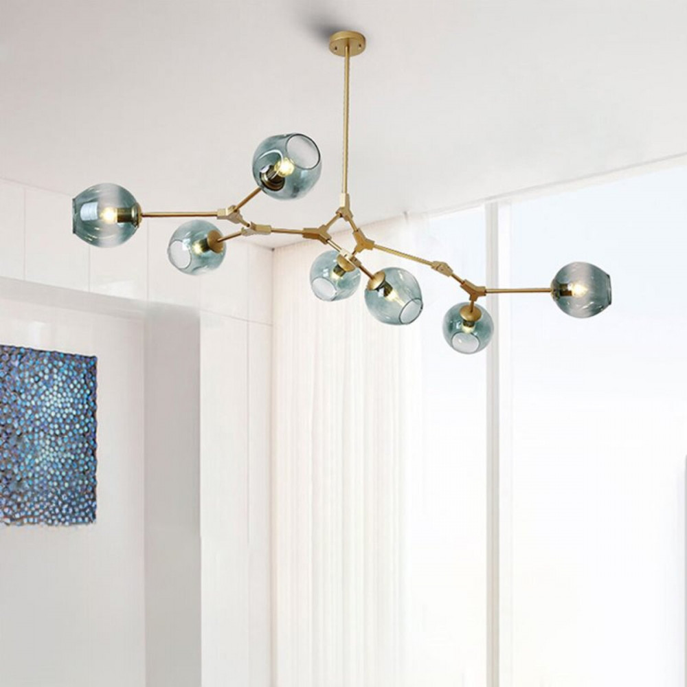 Сім плафони зі скла сірого відтінку надають вашому освітленню неповторний стиль. З цоколем Е27, ця люстра підтримує лампочки до 60 Ватт, забезпечуючи ефективне та яскраве освітлення вашого приміщення.