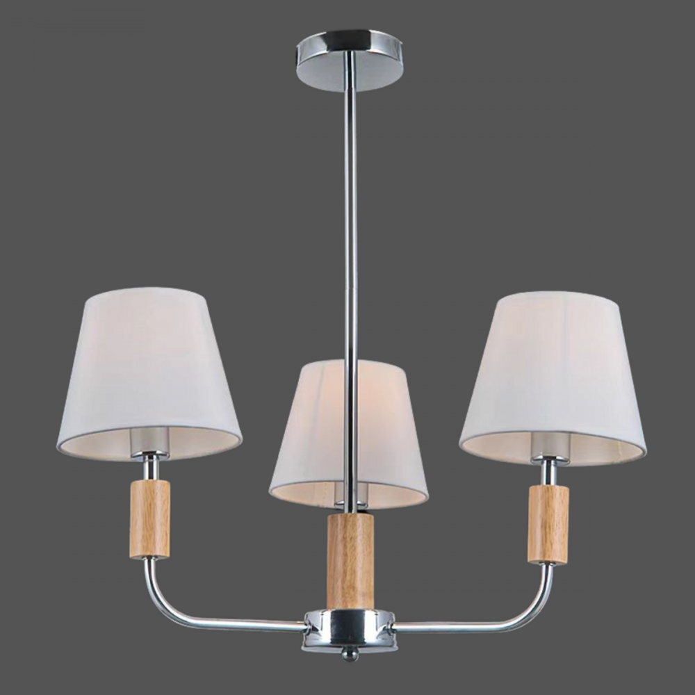 Люстра класична для вітальні VALESO V16-3 CH — стильний акцент у вашій вітальні, який гармонійно поєднує класику з сучасними елементами дизайну. Завдяки витонченій комбінації хромового металу, дерев'яних деталей і білих текстильних плафонів, ця модель додає тепла, затишку і неперевершеної елегантності вашому інтер’єру.