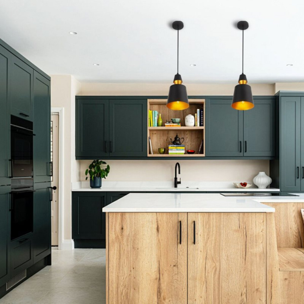 З його регульованою висотою від 220 до 1500 мм та діаметром 150мм, ви маєте можливість налаштовувати цю люстру відповідно до вашого смаку та потреб. Виготовлена з металу в чорному кольорі з золотистим внутрішнім плафоном, вона створює ефектний контраст, додавши вашому простору особливий шарм.