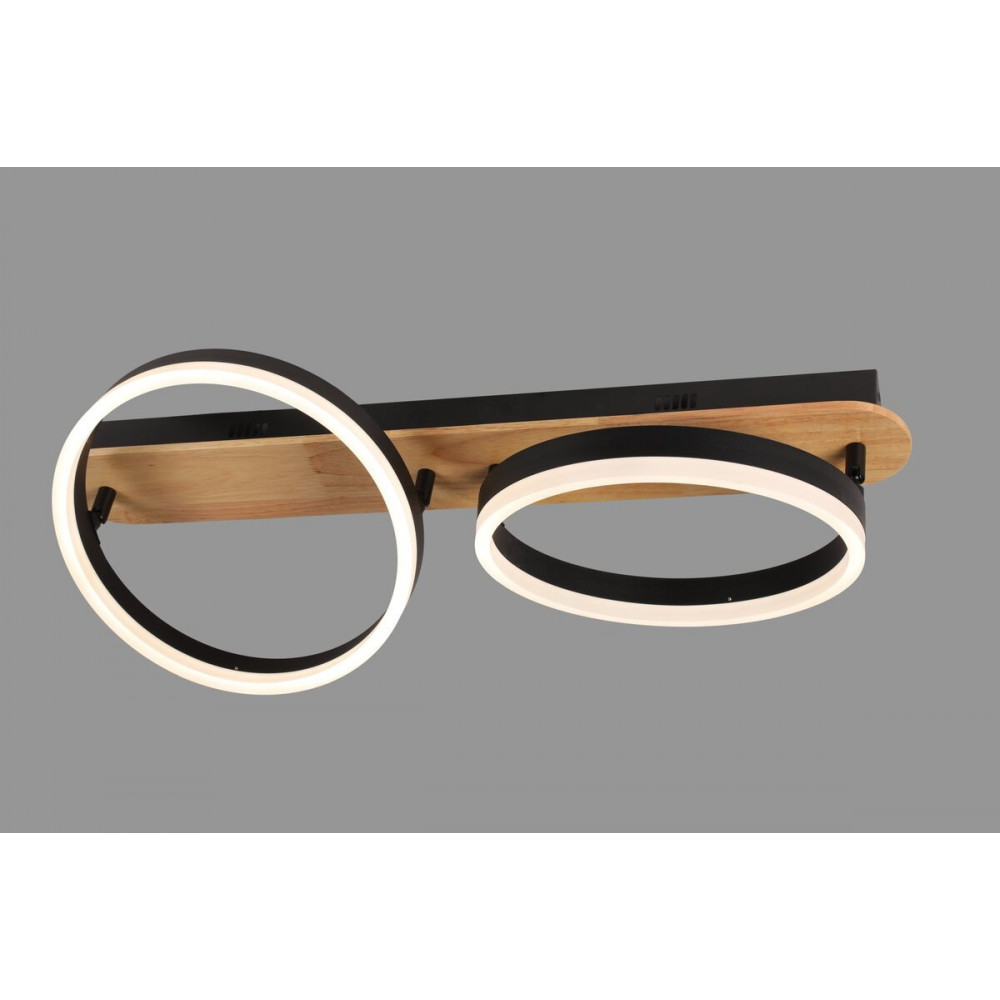 Сучасна стельова LED-люстра 77080-2L прямокутної форми (720×300×H140 мм) є практичним рішенням для освітлення кімнати. Корпус виготовлений з надійної комбінації металу (чорний колір), дерева та акрилу. Забезпечує високу ефективність освітлення завдяки двом джерелам 32W, сумарно 64W, зі світловим потоком 2576 люменів.