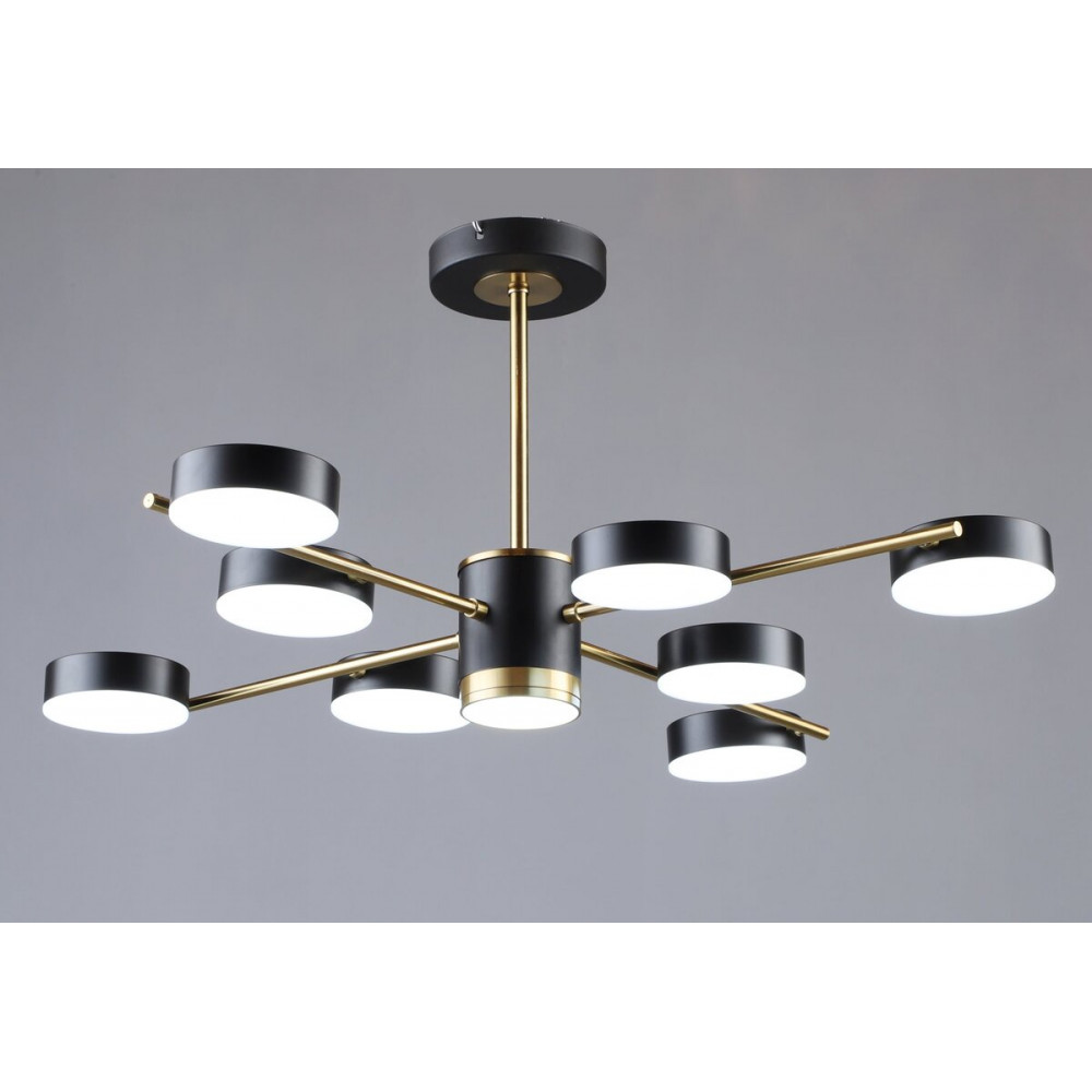 Каркас виготовлений з міцного чорного та позолоченого металу , що додає люстрі сучасного стилю лофт. Вісім круглих плафонів виготовлені з акрилу рівномірно розподіляють світло, створюючи затишну атмосферу.