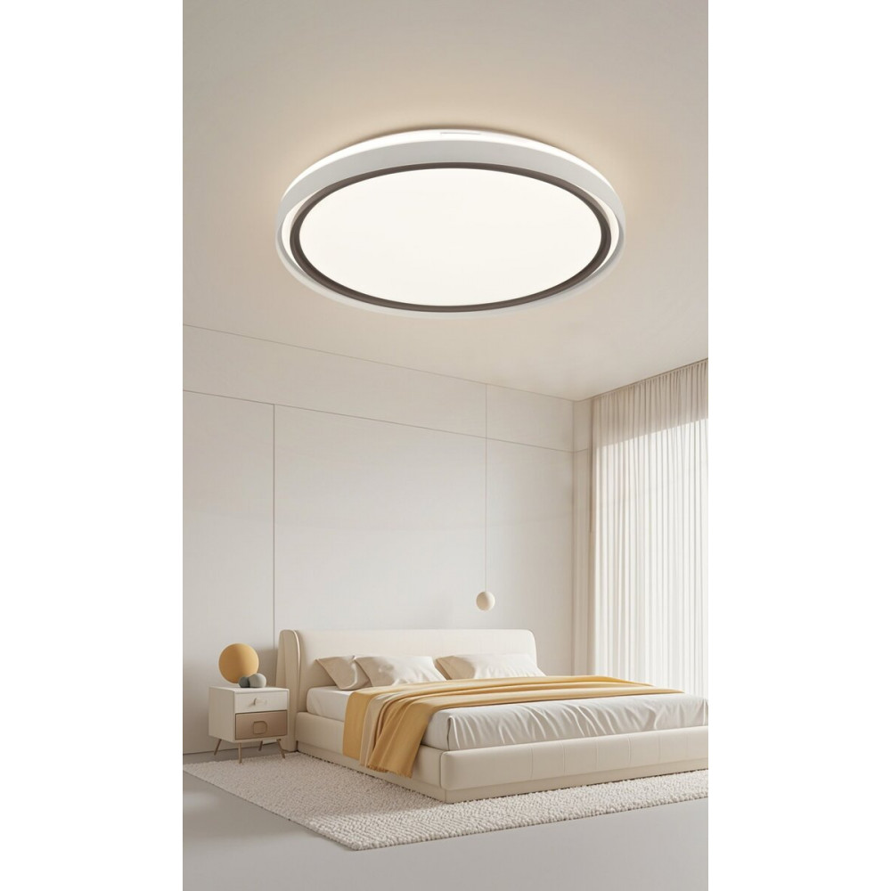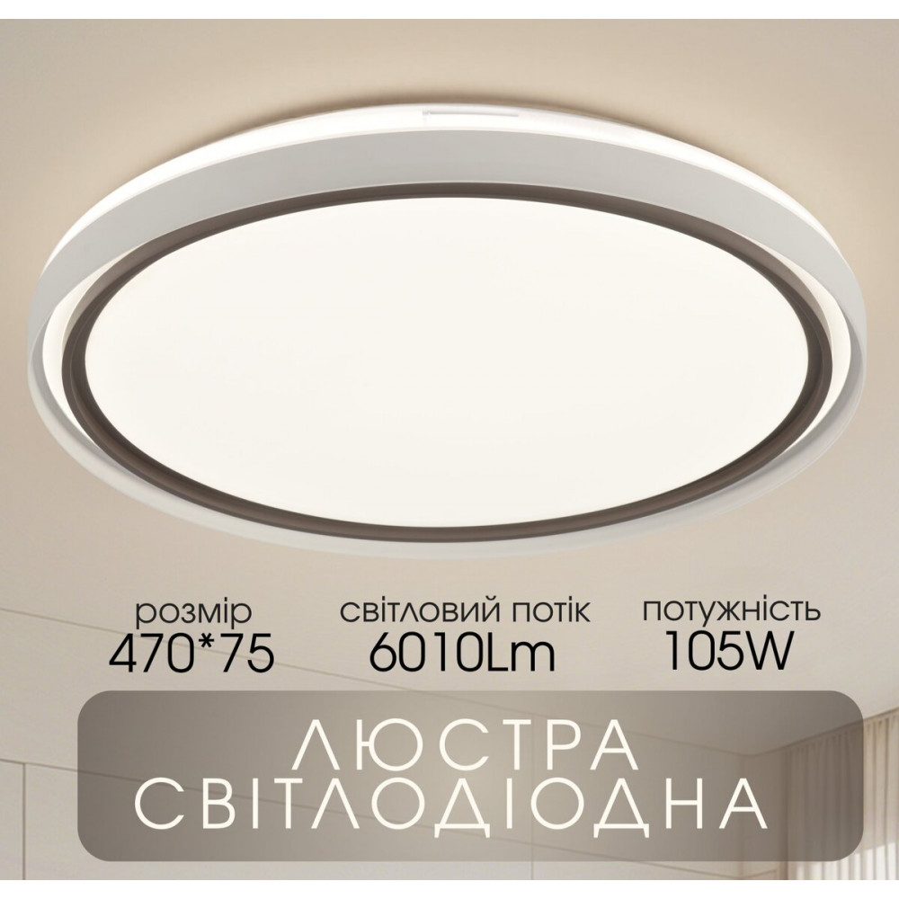 Модель оснащена вбудованими світлодіодами та має вражаючу загальну потужність 70W+35W, що дає потужний світловий потік у 6010 Lm. Ця особливість дозволяє ефективно освітлювати значну площу. Керування здійснюється традиційним способом, оскільки пульт дистанційного керування не передбачено, що робить використання люстри простим та зручним.