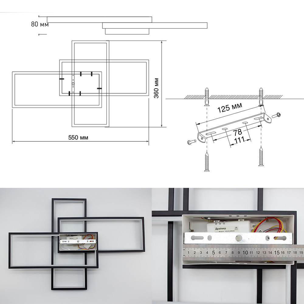 Управляемая светодиодная СМАРТ люстра ESLLSE SVEN 85W 3S 690x470x80мм Черно-белая