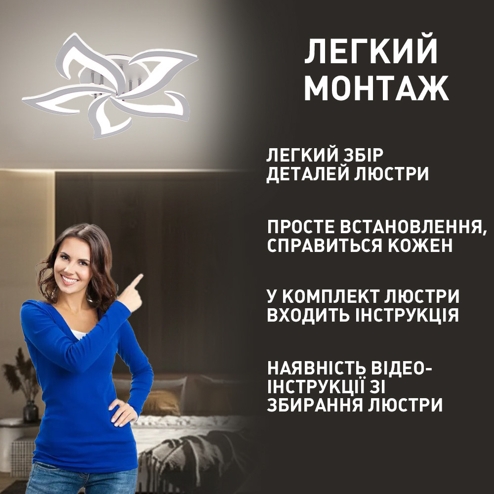 Люстра светодиодная с пультом ESLLSE ELLA RGB 42+10 Вт 5F 600x95 мм Белая