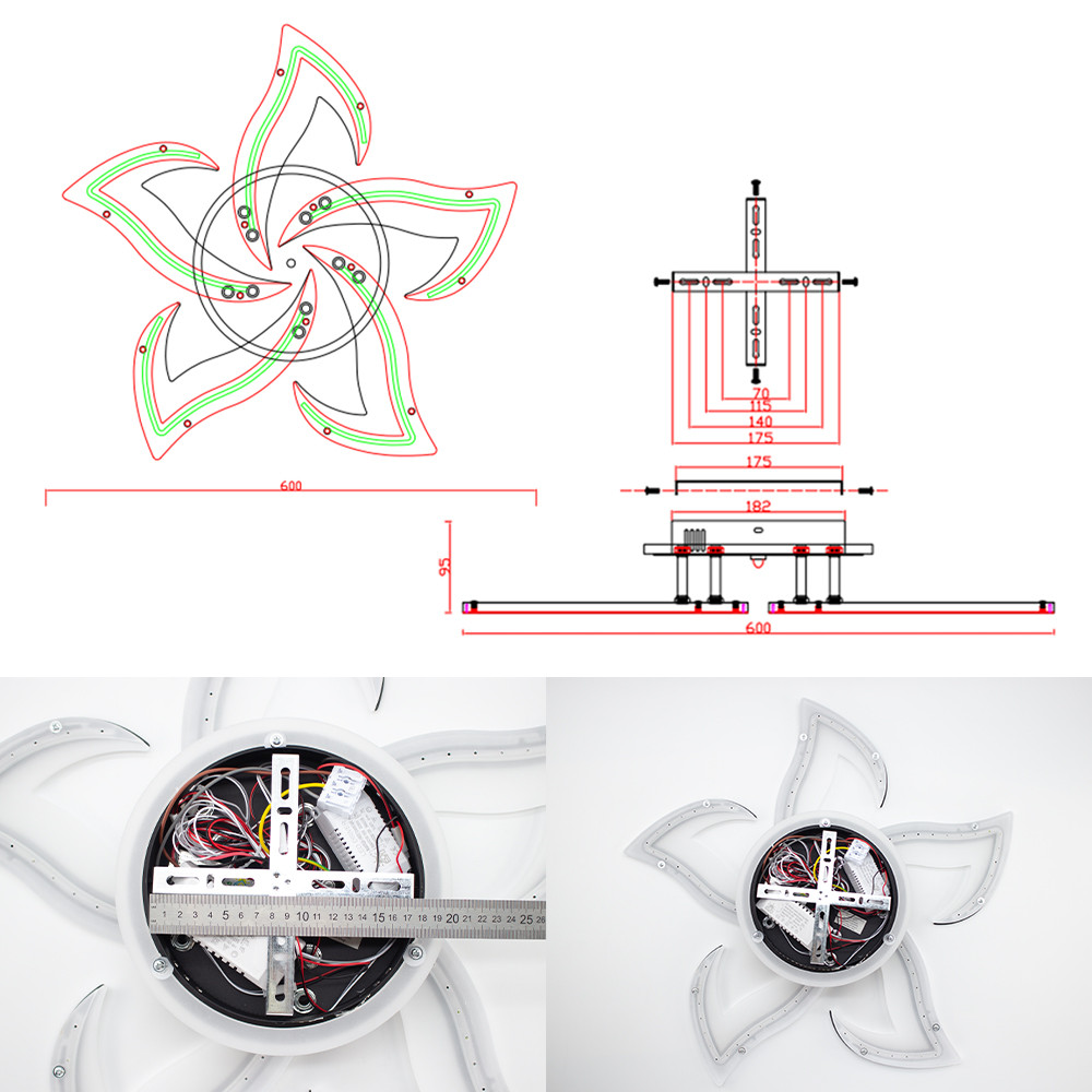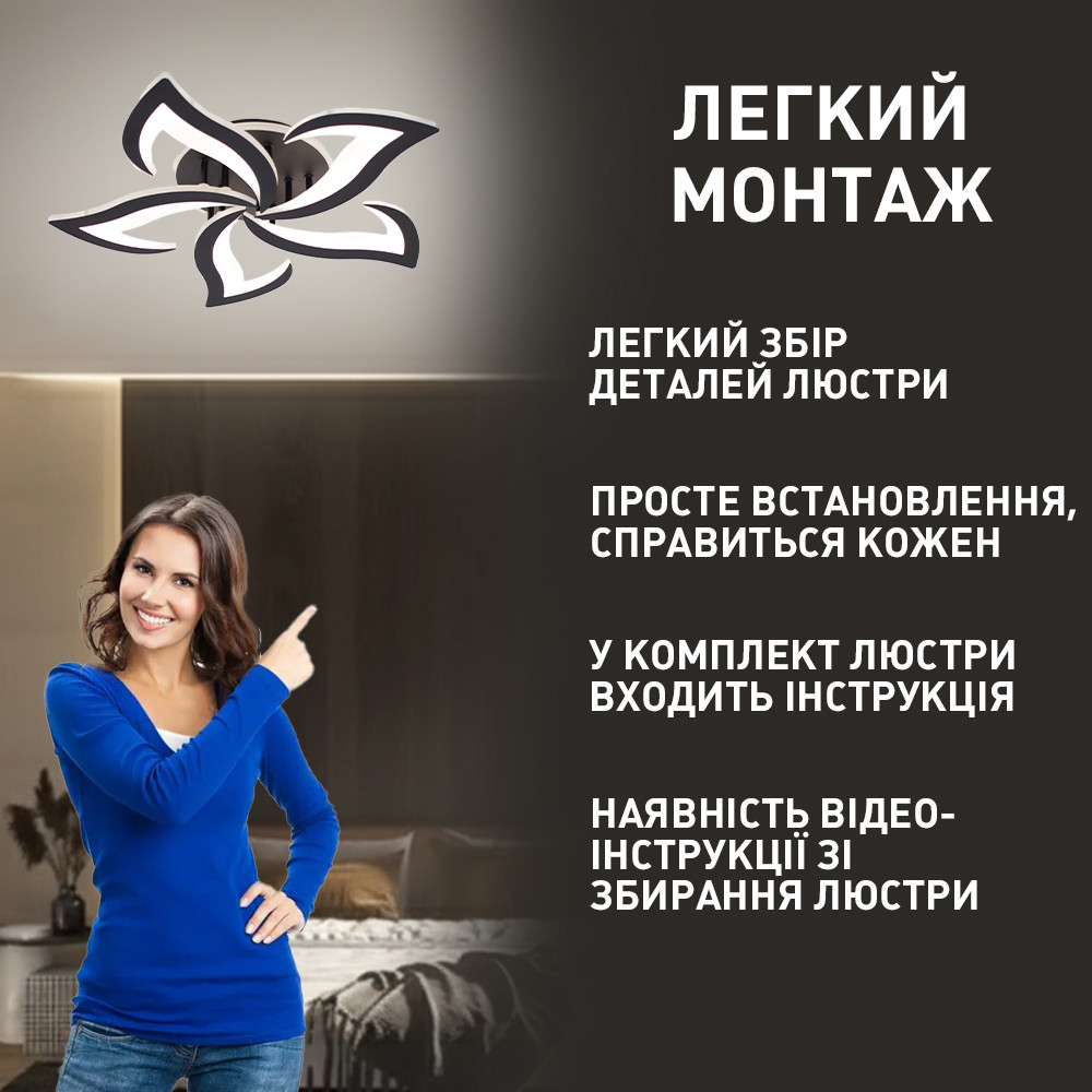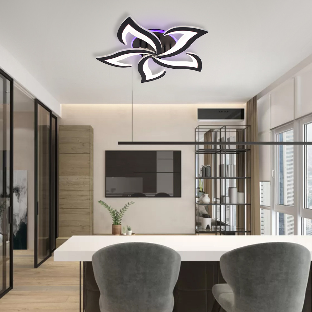 Люстра светодиодная с пультом ESLLSE ELLA RGB 42+10 Вт 5F 600x95 мм Черная