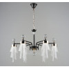 Підвіс виготовлений зі скла прозоро-золотого кольору і прикрашений металевими лініями чорного кольору, які створюють гарну геометричну гру. Цей вишуканий дизайн робить цю люстру не лише джерелом світла, а й справжньою прикрасою для вашого приміщення.