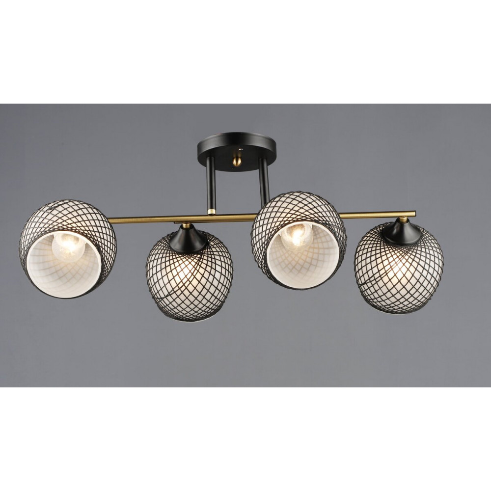 Люстра B A4436/4 в елегантному поєднанні кольорів мідь + чорний — це сучасне рішення для стильного інтер’єру. Витончені скляні плафони та металева основа створюють витриманий і водночас затишний образ. Ідеально підійде для встановлення у вітальні, спальні або просторій кухні. Завдяки чотирьом патронам E27, можна підібрати потрібну яскравість, виходячи з побажань і потреб приміщення.