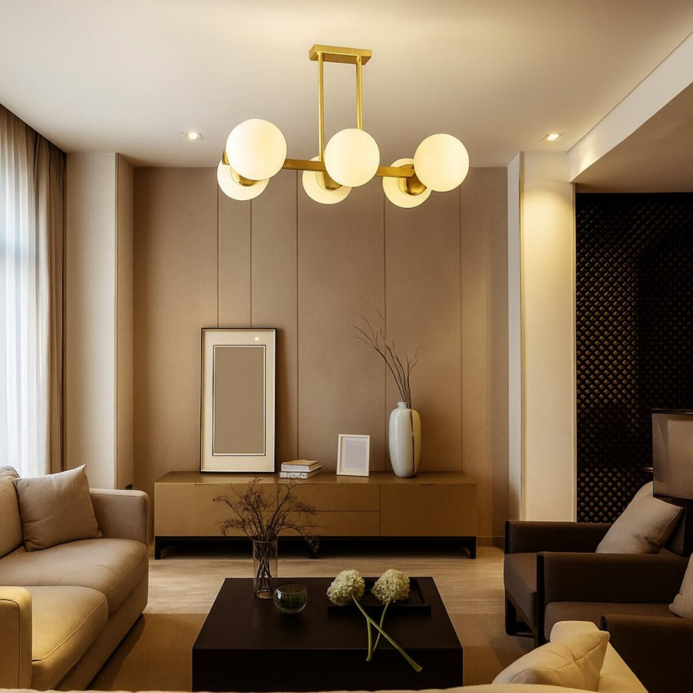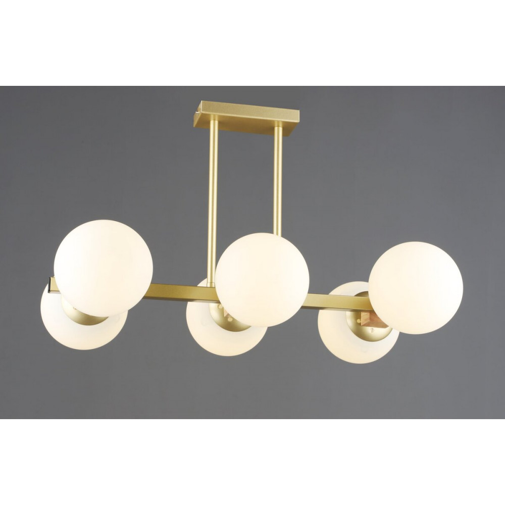 Елегантна люстра B NQ6625/6 у розкішному золотому кольорі створена для тих, хто цінує класичну витонченість у поєднанні з сучасними матеріалами. Завдяки шести патронам E27, модель забезпечує якісне та рівномірне освітлення, що підходить для просторих кімнат — вітальні, їдальні чи холу. Металева конструкція зі сталевим каркасом та матовими скляними плафонами додає вишуканості та довговічності.