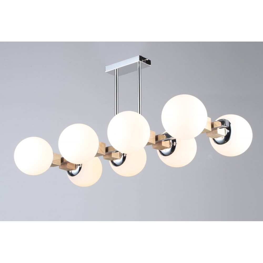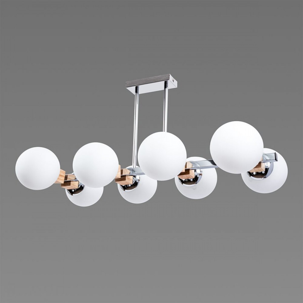 Сучасна люстра B NQ6625/8 у стильному хромованому виконанні стане вишуканим доповненням інтер’єру. Вісім патронів типу E27 забезпечують яскраве і рівномірне освітлення, що підходить для великих кімнат — віталень, столових, кабінетів чи спалень. Поєднання сталі та скла гарантує довговічність і елегантність виробу. Матове скло пом’якшує світло, створюючи затишну атмосферу.
