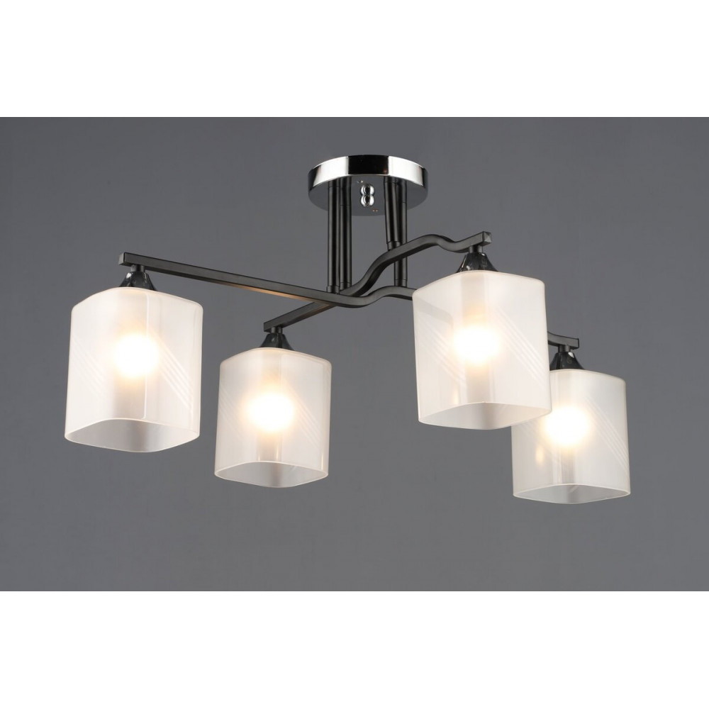 Люстра A4456/4 — це витончене поєднання класичного стилю та сучасної геометрії. Вишуканий дует чорного кольору та хрому створює виразний контраст, а скляні плафони забезпечують рівномірне й м’яке освітлення. Завдяки елегантному дизайну модель гармонійно впишеться в інтер'єри спальні, вітальні, їдальні або кабінету.