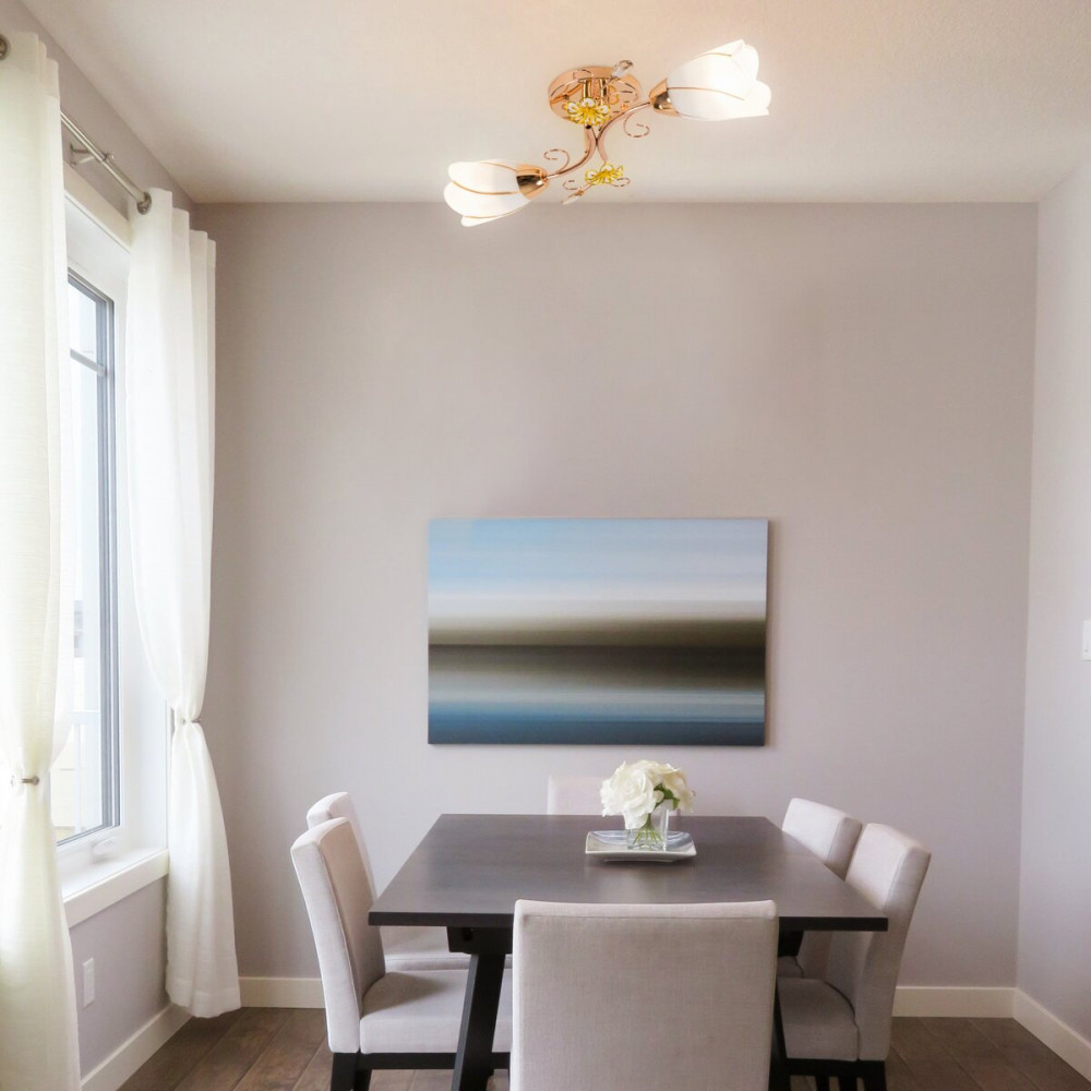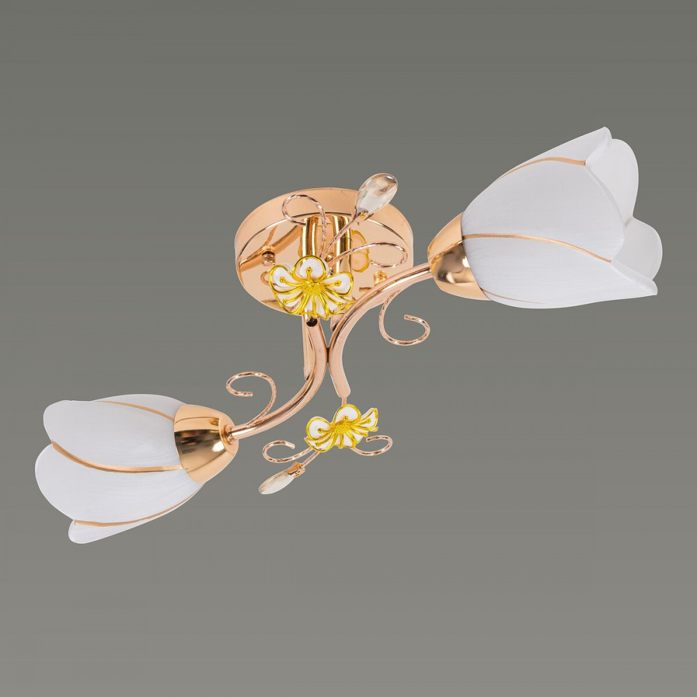 Ця люстра має довжину 480 мм, ширину 260 мм і висоту 150 мм, що робить її відмінним варіантом для середніх та невеликих приміщень. Каркас світильника виготовлений з металу, що забезпечує йому міцність та стійкість. Плафони виконані зі скла і мають квіткоподібну форму, створюючи ніжну та романтичну атмосферу.