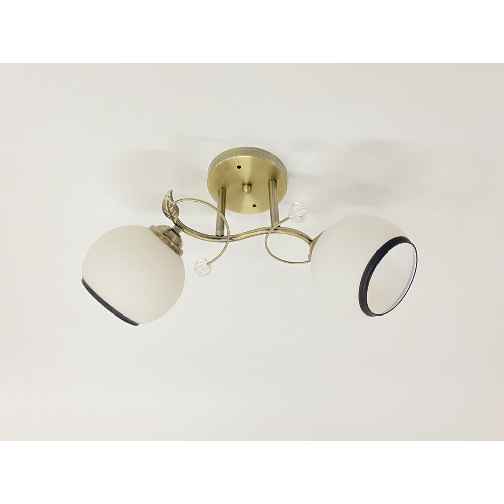 Ця стельова люстра на 2 плафони — втілення класичного стилю та вишуканості. Її дизайн із плавними лініями та елементами у вінтажному стилі ідеально доповнить інтер'єр у стилі класика, прованс або вінтаж. Каркас зі сталі кольору бронза надає виробу благородного вигляду, а два світлі скляні плафони забезпечують м'яке і приємне розсіяне освітлення.