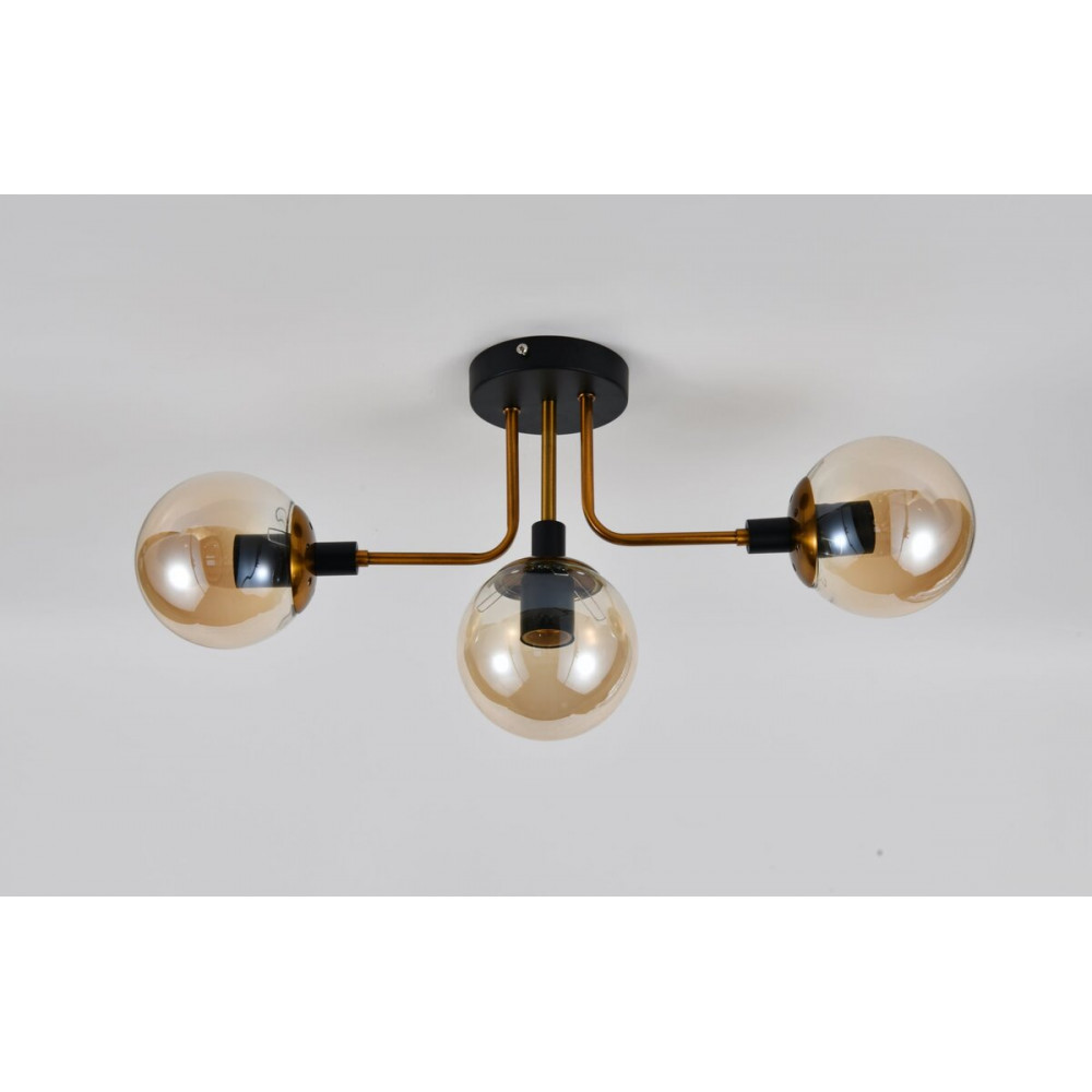 Люстра стельова на 3 плафони VALESO DX2102-3, патрон E27, Чорний+Золото