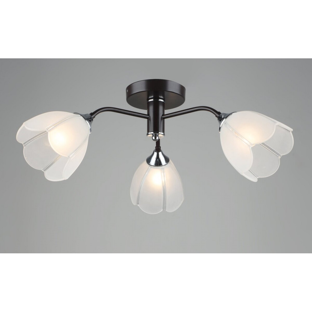 Ця люстра поєднує в собі елегантність кольору кави та хромового створююьб свіжий і сучасний вигляд. Каркас виготовлений з високоякісного металу, що забезпечує міцність і довговічність. Три скляні плафони, виконані у формі квітки, додають ніжності та витонченості, роблячи люстру справжньою окрасою вашого інтер'єру.