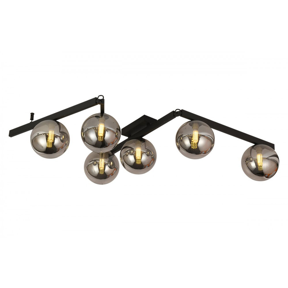 Чорний металевий каркас із 6 круглими скляними плафонами створює сучасний, мінімалістичний вигляд. Люстра стане акцентом у будь-якому просторі, підкреслюючи його стиль та елегантність.