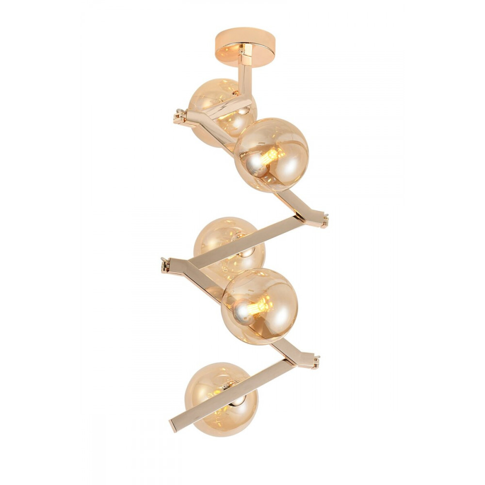 Золотий металевий каркас у поєднанні з 5 круглими скляними плафонами створює витончений вигляд, який гармонійно доповнить будь-який інтер’єр – від мінімалізму до сучасної класики.
