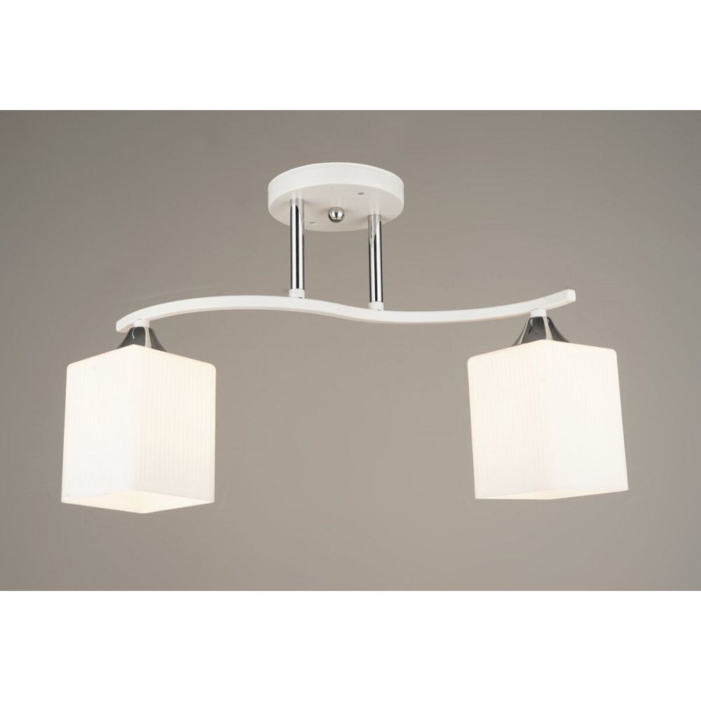 Люстра Sirius B N4069/2 WT+CH виготовлена з високоякісного металу білого та хромового кольору, що додає їй сучасного і стильного вигляду. Два скляних плафони створюють м'яке та рівномірне освітлення, роблячи ваш простір більш затишним і приємним.
