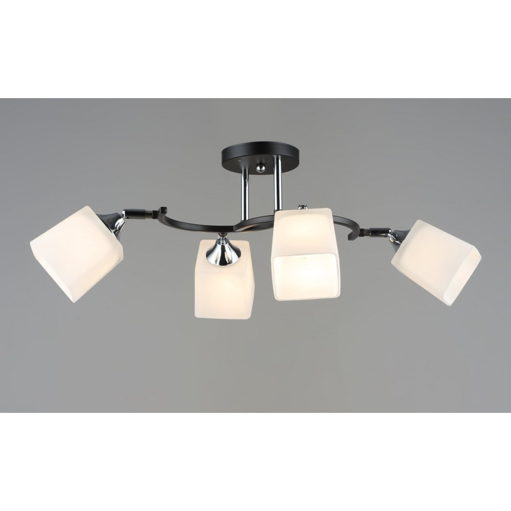 Каркас виготовлений з високоякісного металу чорного та хромового кольору, що додає люстрі сучасного та стильного вигляду. Чотири скляні плафони білого кольору створюють м'яке і рівномірне світло, яке зробить ваш інтер'єр ще більш затишним.