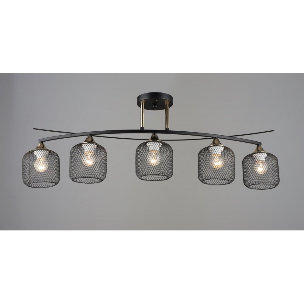 Оснащена п’ятьма чорними металевими плафонами та чорною основою з декоративними елементами кольору золота, ця люстра стане яскравим акцентом у будь-якому інтер'єрі.