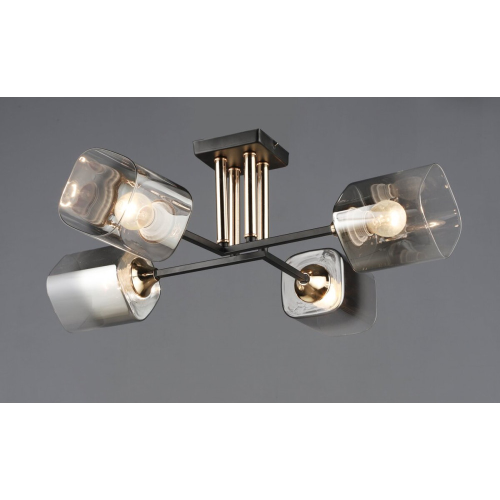 Стильний стельовий світильник у поєднанні чорного та золотого кольорів — ідеальний акцент для сучасного інтер'єру. Міцна сталева основа поєднується зі скляними плафонами, створюючи лаконічний та стильний дизайн. Такий світильник стане чудовим рішенням для освітлення вітальні, спальні, кухні чи офісного простору.