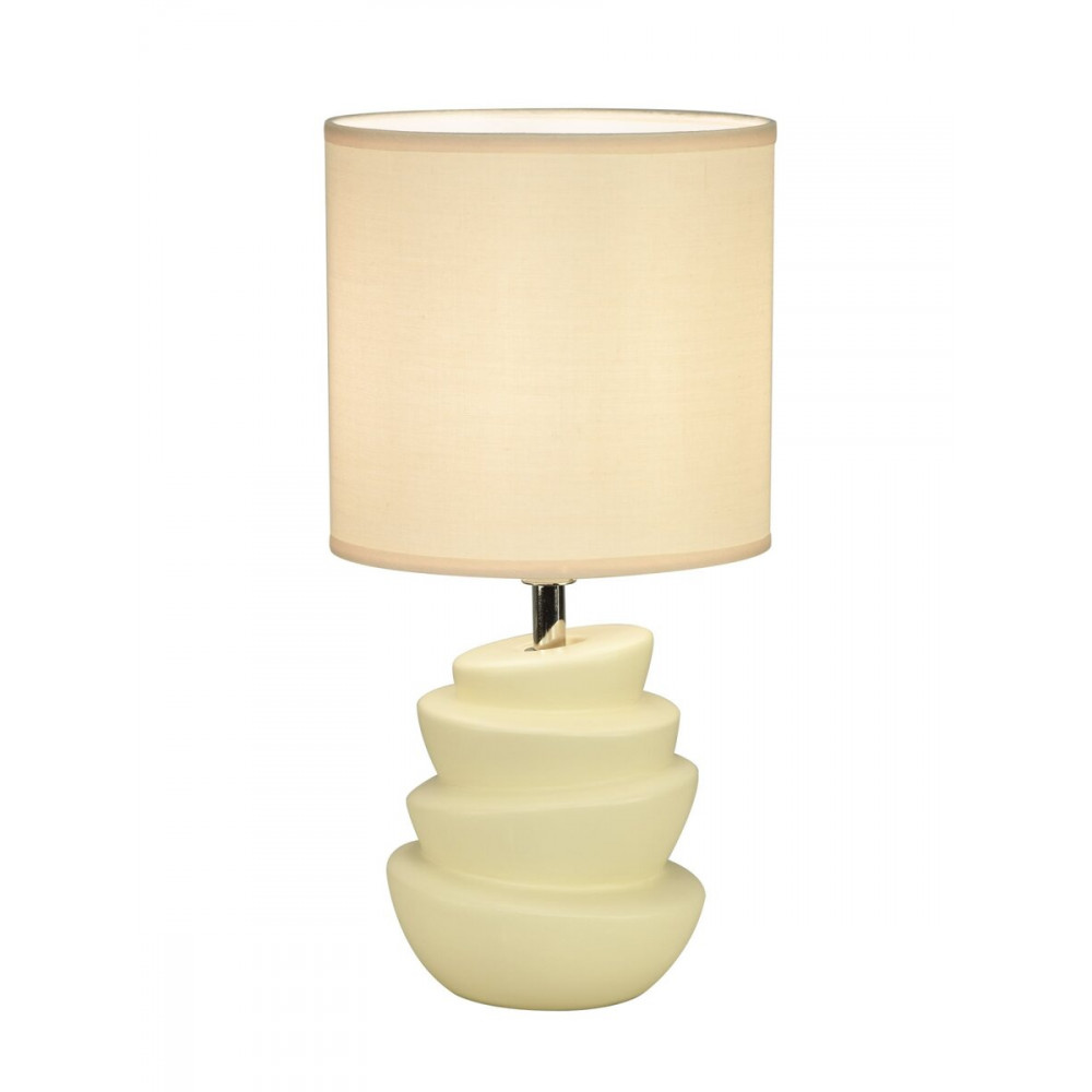 Настільна лампа VALESO AT23108 в молочному кольорі– стильний акцент у вашому інтер’єрі! Молочна керамічна основа додає тепла й затишку, а текстильний абажур м’яко розсіює світло, створюючи комфортну атмосферу.