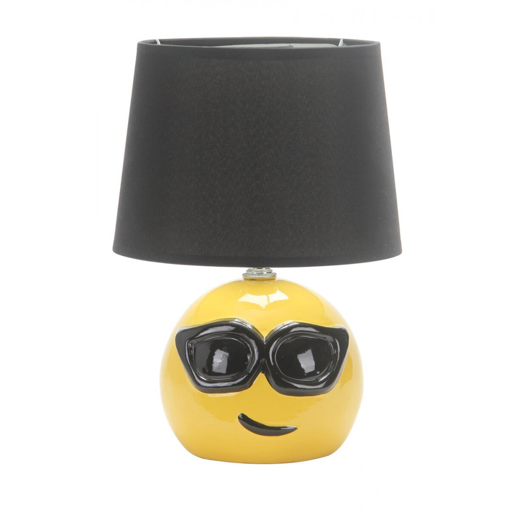 Ця чарівна лампа не лише принесе світло, але й принесе посмішку на ваше обличчя! З її яскравим жовтим керамічним каркасом у вигляді смайлика та чорним текстильним абажуром, вона стане чудовим акцентом у вашому інтер'єрі.