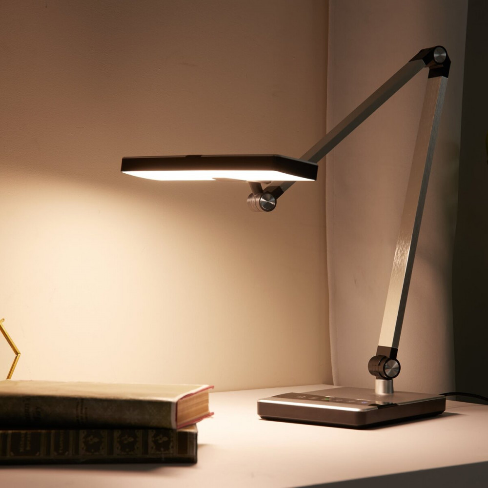 Срібний корпус із високоякісного ABS пластику та алюмінієвий гнучкий шланг дозволяють налаштувати лампу під будь-який кут для комфортної роботи.