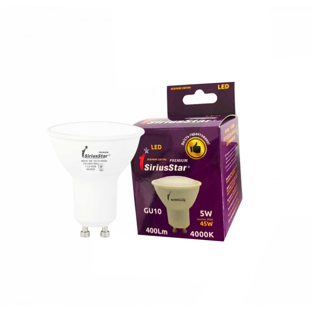 Світлодіодна лампа SIRIUSSTAR 3508 MR16 220V 5W 4000K- GU10