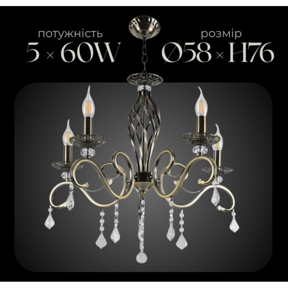 Колір: Витончена бронза надає люстрі шляхетного та антикварного вигляду, що ідеально поєднується з класичним декором.