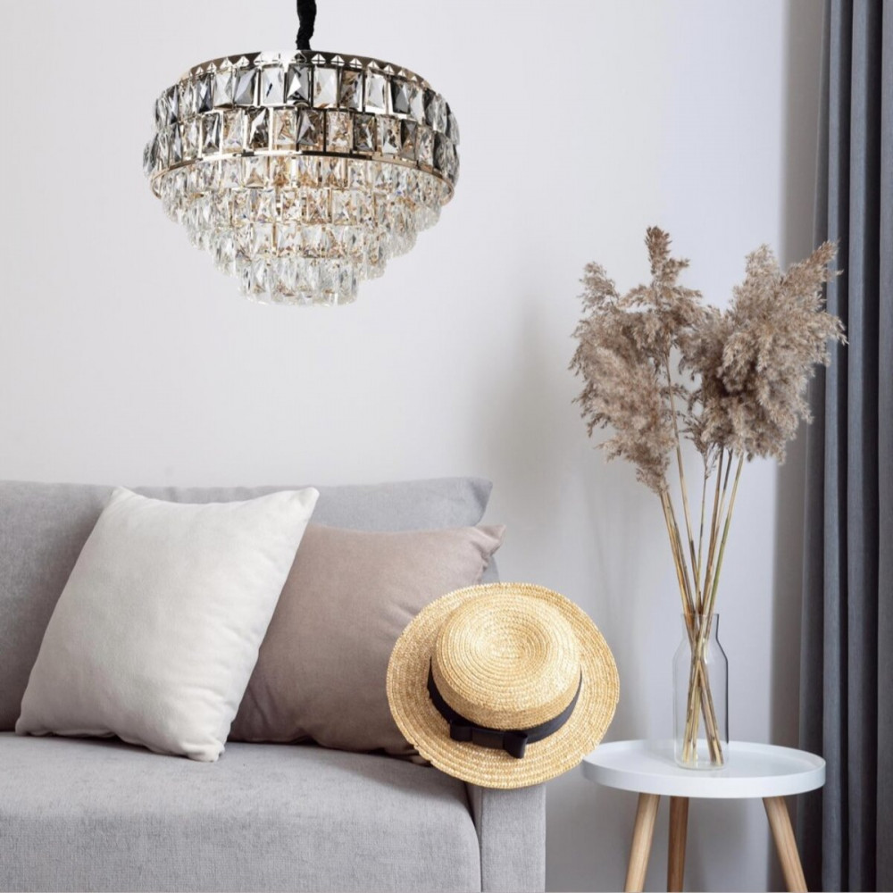Кришталева люстра Sirius 19306-15 має п'ятнадцять лампочок, які забезпечують яскраве світло в кімнаті. Її розміри 500х360 мм, що робить її ідеальною для великих приміщень, таких як вітальні, зали та бенкетні зали. Вона легко справляється з освітленням великого простору, створюючи затишну атмосферу для гостей та мешканців.