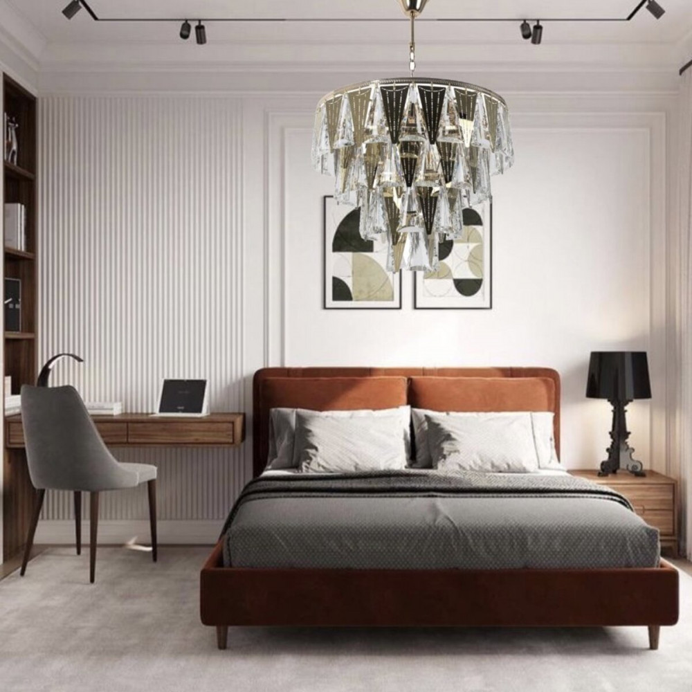 Люстра оснащена каркасом з металу, що забезпечує міцність та стійкість, і кришталевим підвісом, який надає їй розкішного вигляду. Кришталеві деталі роблять світло більш іскристим та грайливим, створюючи неповторну атмосферу.