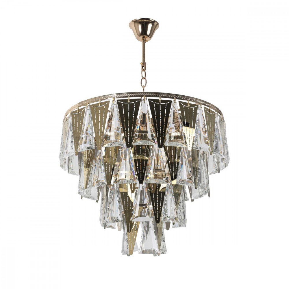 Скляний підвіс з елементами скла та металу трикутних розмірів додає цій люстрі нотку сучасності і оригінальності. Цей дизайн створює цікавий графічний вигляд і додає глибини до освітлення.