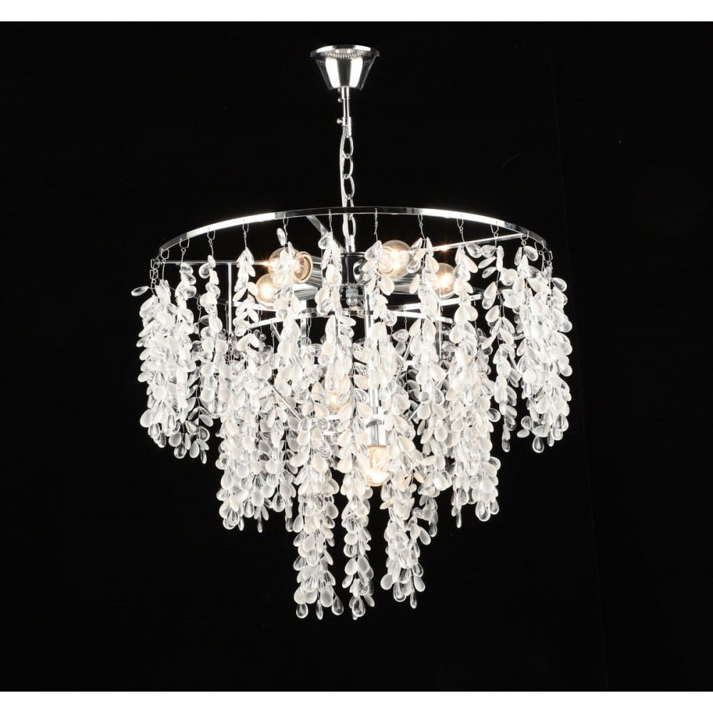 Виготовлена з високоякісної сталі та витонченого скла, що імітує кришталеві елементи, люстра S2477/7 вирізняється довговічністю та класичним дизайном з сучасними нотками. Її оптимальні розміри (Ø500 × H430 мм) дозволяють гармонійно вписатися в більшість інтер'єрів, а хромоване покриття додає відчуття розкоші та сучасності.
