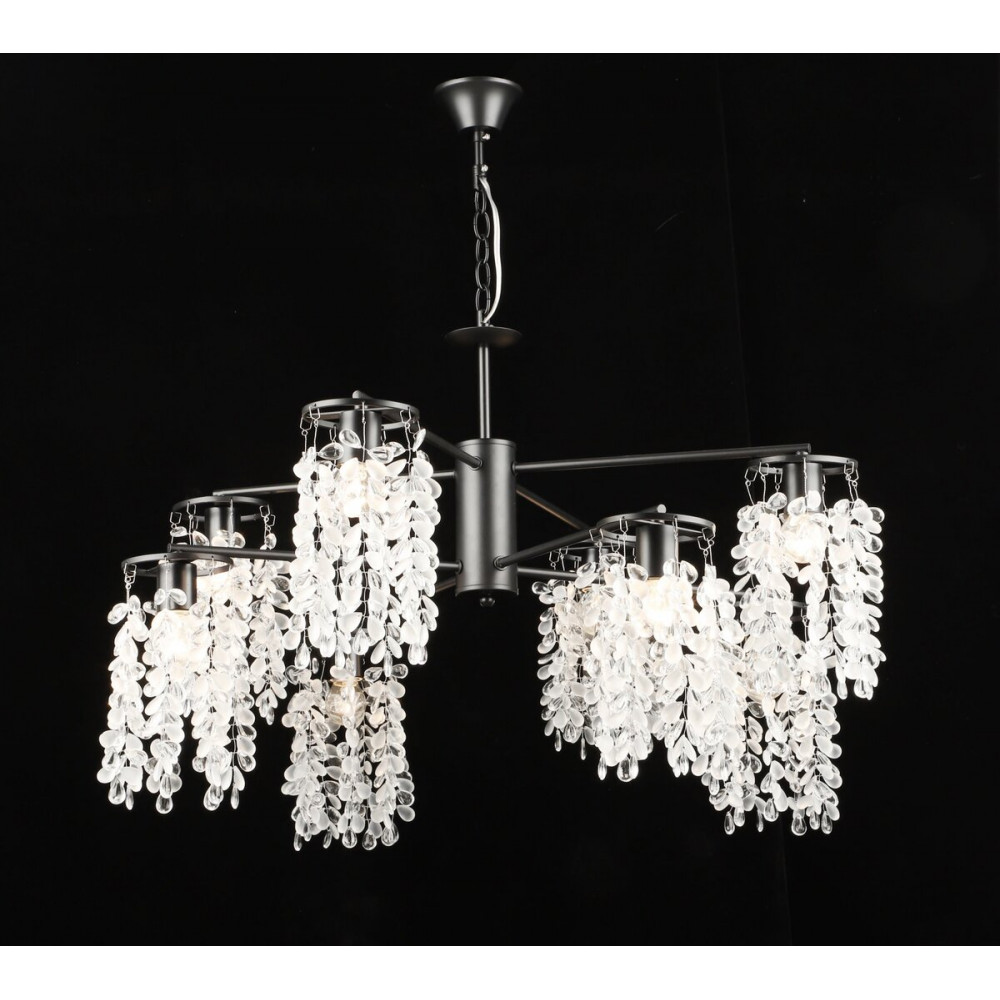 Виготовлена з високоякісної сталі та витонченого скла, що імітує кришталеві елементи, люстра S2481/8 вирізняється довговічністю та сміливим дизайном з сучасними нотками. Її значні розміри (Ø710 × H650 мм) дозволяють гармонійно вписатися у великі простори, а глибокий чорний колір створює ефектний контраст, підкреслюючи блиск кришталевих елементів.