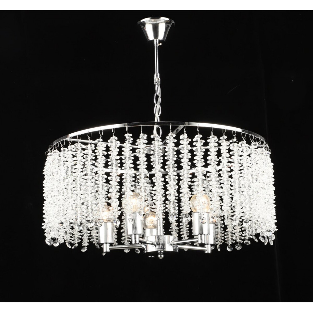 Виготовлена з високоякісної сталі та витонченого скла, що імітує кришталеві елементи, люстра S2487/5 вирізняється довговічністю та класичним дизайном з сучасними нотками. Її оптимальні розміри (Ø500 × H265 мм) дозволяють гармонійно вписатися в більшість інтер'єрів, а хромоване покриття додає відчуття розкоші та сучасності.