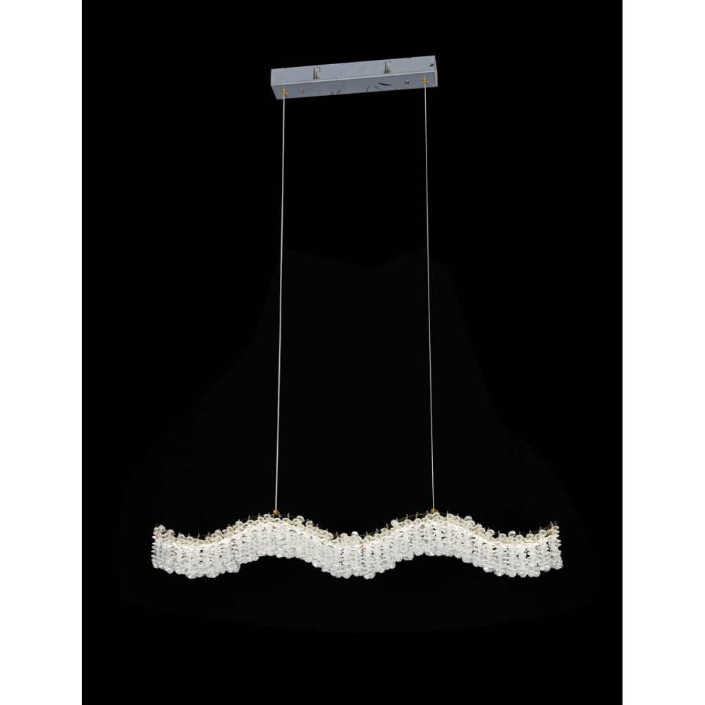 Розкішна підвісна світлодіодна люстра VALESO 33053/800*60 у блискучому хромовому кольорі — це ідеальний вибір для елегантного акцентного освітлення. Завдяки подовженій формі (800*60 мм) вона ідеально підкреслить довгі поверхні, як-от обідній стіл чи барна стійка. Корпус світильника виконаний з якісного металу, прикрашеного розкішним кришталем, що забезпечує ефектне мерехтіння і гру світла.