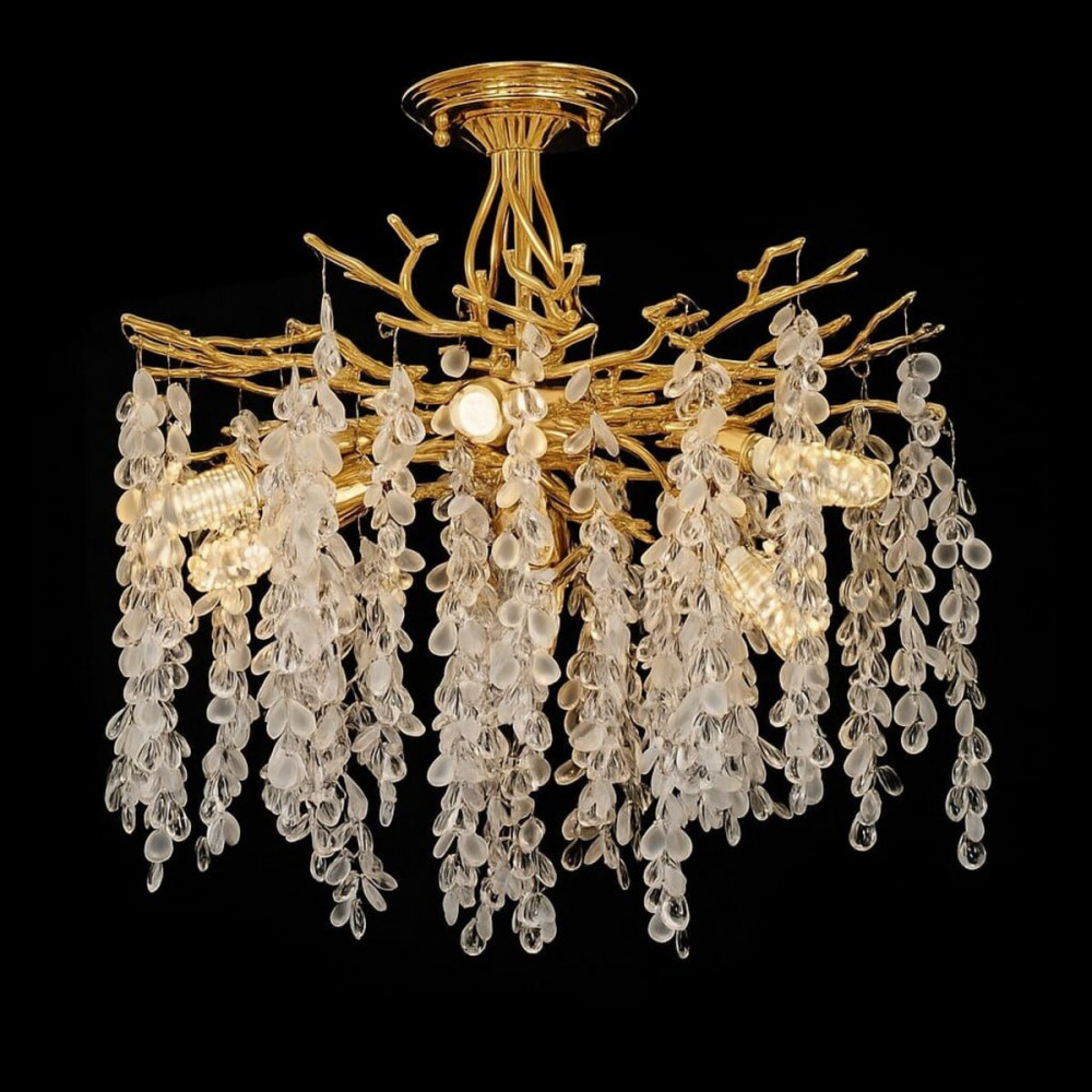 Люстра стельова VALESO з кришталем на 6 плафонів: Розкіш та блиск у золотистому кольорі